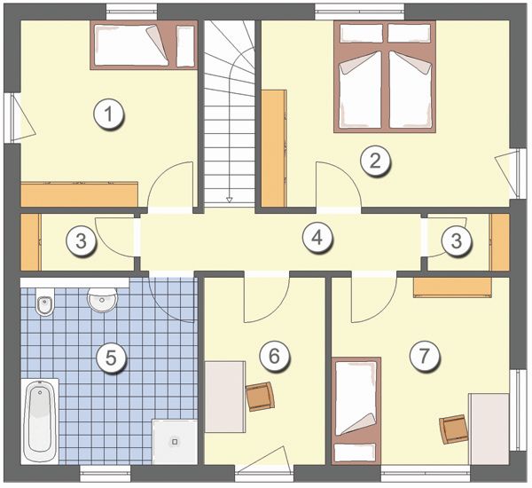 Die zweite Variante des City 152 bietet noch mehr Platz und noch mehr Möglichkeiten zum Wohnen. Denn die Stadtvilla gibt Familien mit bis zu drei Kindern jeweils ein eigenes Zimmer. Zudem gibt es hier sogar zwei Badezimmer, wodurch auch morgens, wenn mehrere Personen gleichzeitig aufstehen müssen, die Atmos-phäre entspannt bleibt. Und wer gerne einmal von Zuhause aus arbeiten möchte, der hat hier sogar sein eigenes Arbeitszimmer!