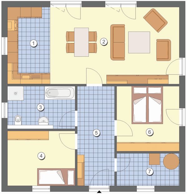 Der intelligente Grundriss des Comfort 92 wurde so gestaltet, dass in dem Bungalow eine Familie mit bis zu drei Personen mehr als ausreichend Platz haben. Alternativ kann das Kinderzimmer natürlich auch als Gästezimmer oder anderes genutzt werden.